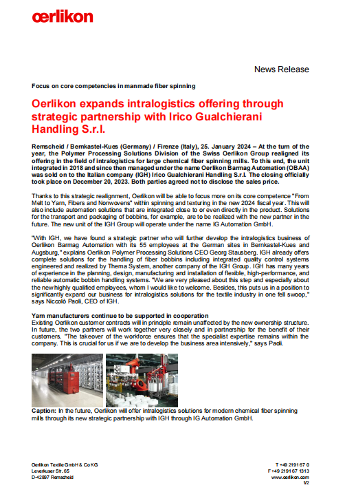 2024年1月,IGH收購巴馬格旗下自動化部門,